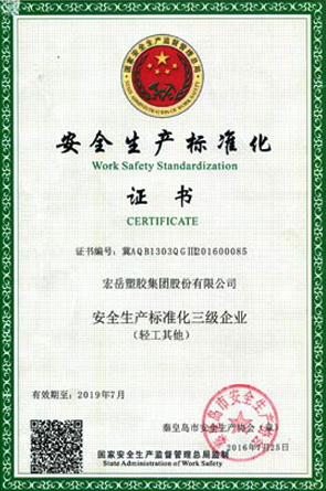 Being elected as a member of the National Plastics Standardization Technical Committee and passed the safety standardization certification. The testing center passed the CNAS certification and was recognized as the Hebei Enterprise Technology Center.