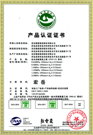 Science and technology are the core competitiveness of the company. Hongyue Group leads the market with advanced technology and focusing on the research and development of various types of plastic pipe. The testing center is approved by the CNAS National Laboratory and has passed the ISO9001 Quality Management Certification and the ISO14001 Environmental management certification. , OHSAS 18001 Occupational Health and Safety Management System Certification, Water-saving Product Certification and China's Environmental Labeling Certification.