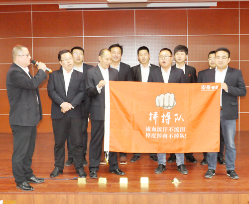 4月3日,九游集团营销誓师大会在营销中心热血开展! 全员参与,激情动员,九游销售精英们组成十个战队,并确立自己的队长、队名、队旗、队标及队呼。在大会上各战队“亮队型、展风彩、表决心”,队员们慷慨激昂的表态发言,点燃了营销人员的满腔热情。