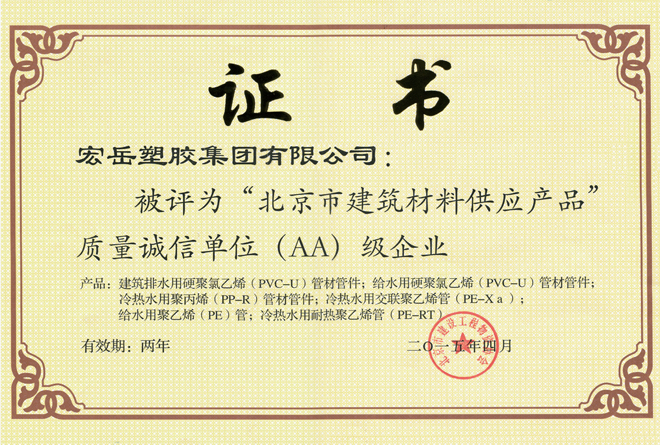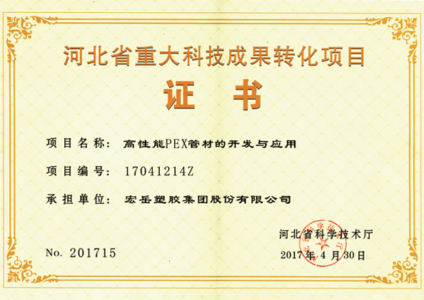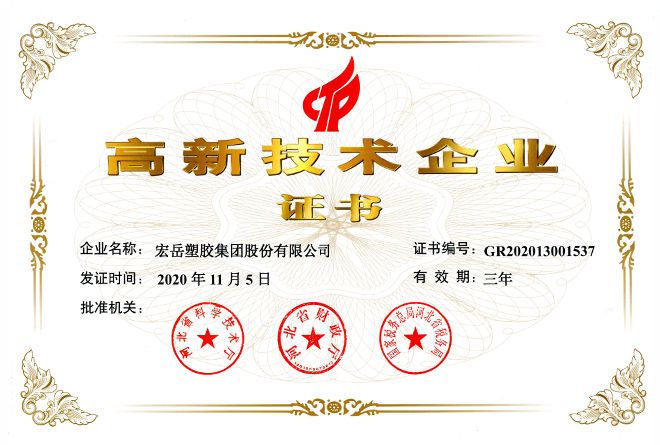 九游被认定为河北省高新技术企业,九游牌塑料管材管件被认定为国家免检产品。