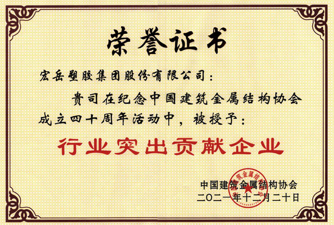 九游荣获中国建筑金属结构协会行业突出贡献企业、河北省诚信共建企业