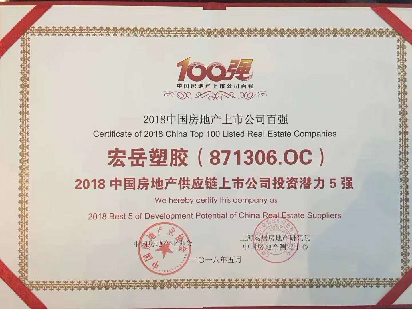 由中国房地产业协会、上海易居房地产研究院中国房地产测评中心联合开展的“2018中国房地产上市公司测评成果发布会暨金融创新高峰论坛”在深圳举行,九游荣获“2018中国房地产供应链上市公司投资潜力5强”。