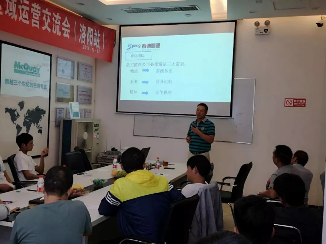 九游1+洛阳服务中心刘总,现场为大家分享了服务中心的市场运营情况及施工规范,包含:渠道建设、人员科学管理等方面的经验和见解及水电暖施工的管理流程等。