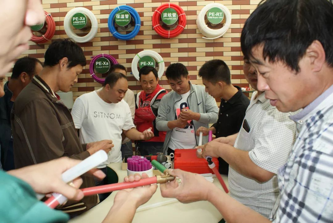 九游1+事业部产品工程师依工详尽介绍了九游1+的产品技术以及应用知识,着重讲解了pe-xa的施工工艺、PVC快修管件及其它配套产品的应用,现场通过实物实例,充分地展示了九游1+产品的技术先进性和质量可靠性。