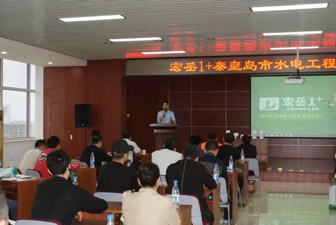 会议现场部分,九游1+事业部副总经理刘总首先对到场的各位水电技师表示热烈的欢迎与感谢,他表示:九游1+的规范发展离不开所有水电技师的共同努力,九游1+将有信心跟所有水电技师们一起将规范的施工标准推广开来。