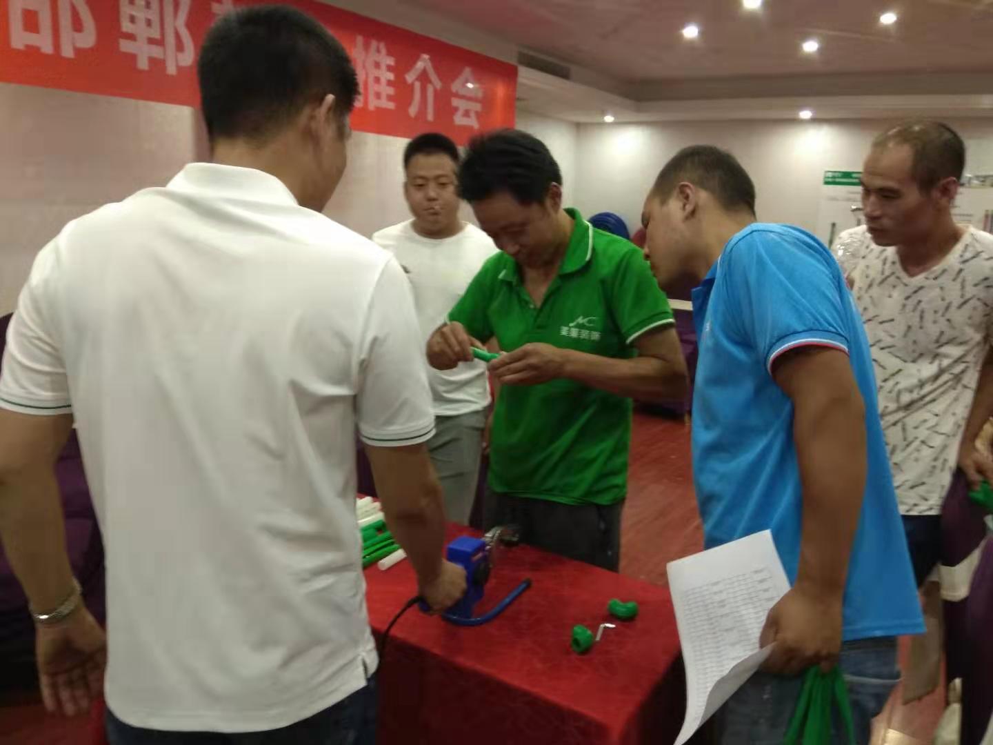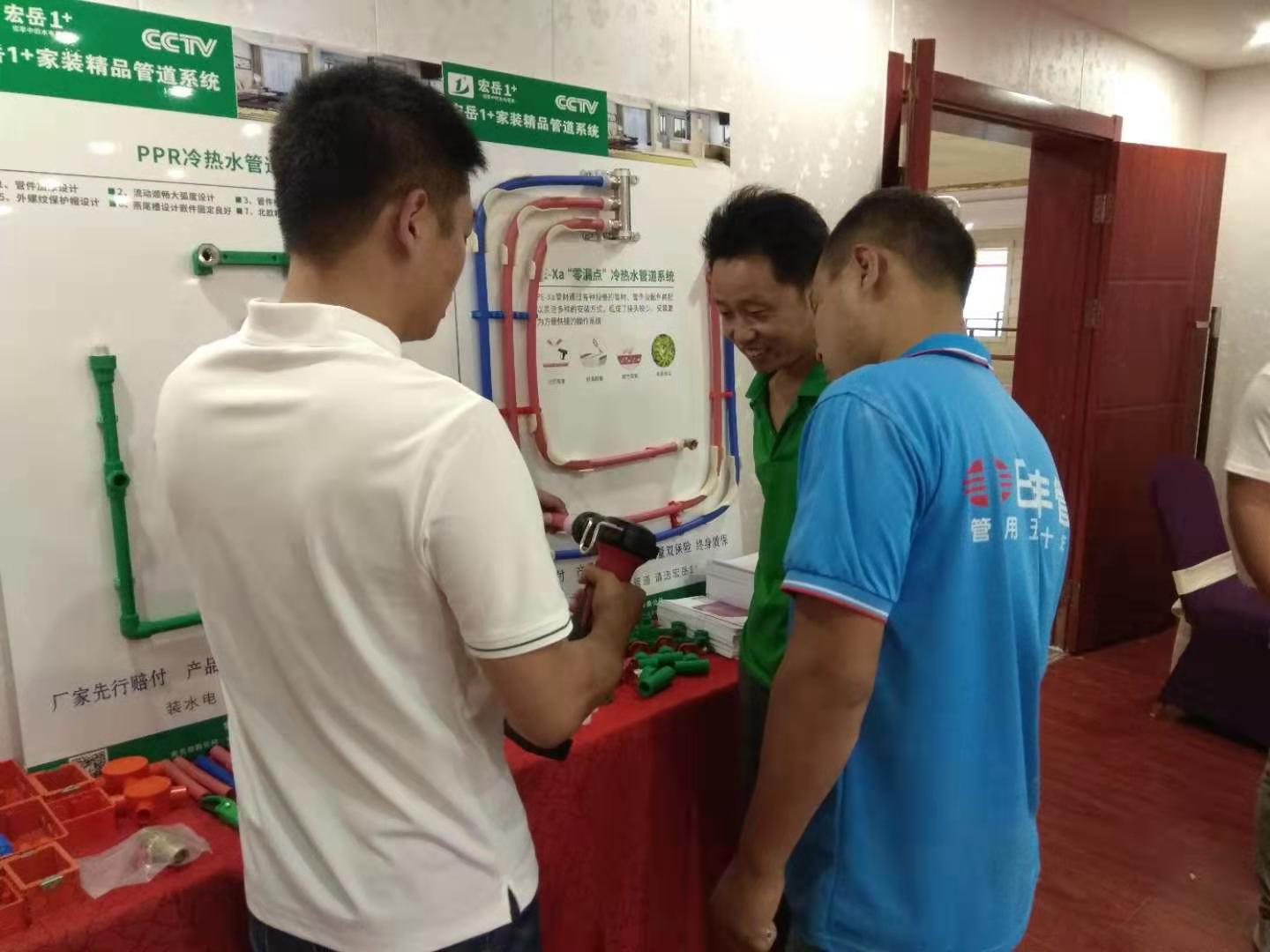 会上,九游1+邯郸服务中心向在场的水电技师们隆重推出了PE-Xa零漏点给水系统,该系统较目前市场主流给水系统降低70%的漏水风险点,耐压性高67%,耐温性高32%。
