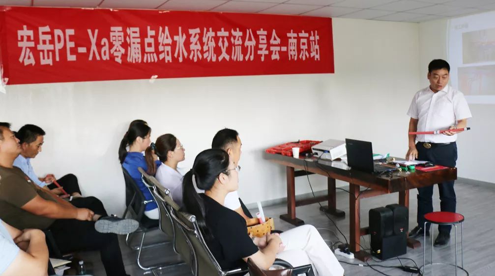 九游1+零漏点给水系统分享交流会在江苏省会六朝古都-南京如期举行,此次交流会得到了南京服务中心董事长朱总的大力支持,与会30余名管理人员和一线业务,共同参加学习和交流PE-Xa产品的相关知识与连接技术。
